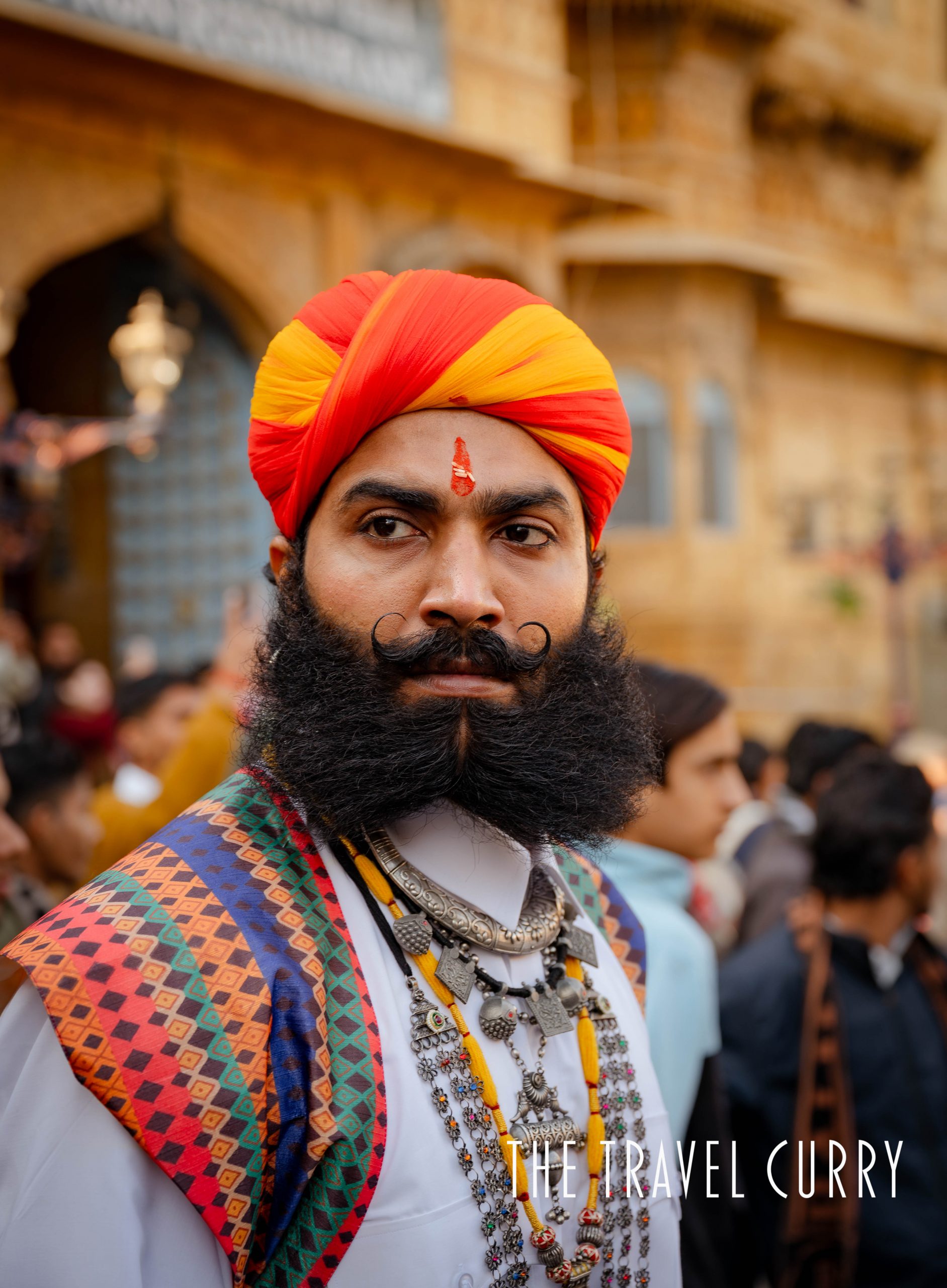 An extravaganza of bright-hued turbans, thick mustache, royal walk